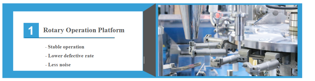 1) 자동 회전 포장기는 정밀 인덱싱 장치와 PLC를 채택하여 각 동작과 작업 스테이션을 제어하여 기계가 쉽고 정확하게 작동하는지 확인합니다.