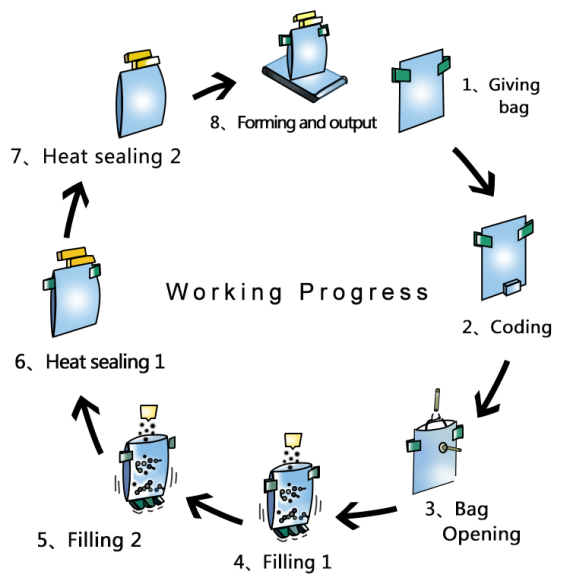 3) 자동 검사 시스템으로 봉지 상태, 충전 및 밀봉 상태를 확인할 수 있습니다.
